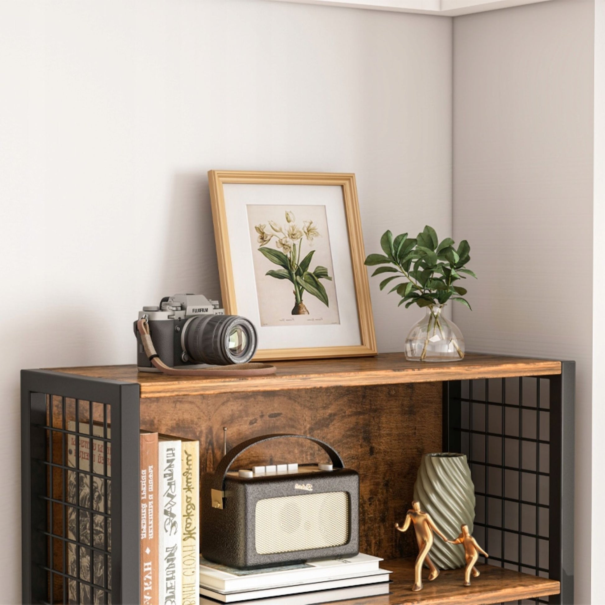- Stabile Konstruktion – robuster Metallrahmen und MDF-Böden, ergänzt durch seitliche Gitterelemente für zusätzliche Stabilität und stilvolle Akzente.