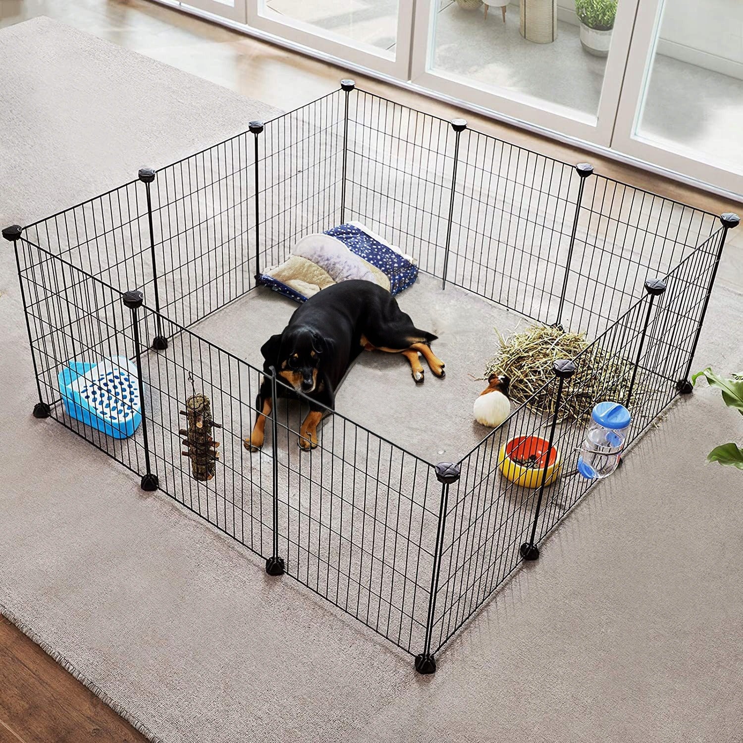 ✅Schwarzer Metallzwinger für Hunde, Kätzchen und Kaninchen 108 x 108 cm✅